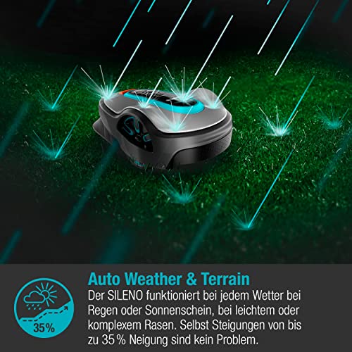 Gardena SILENO life: Mähroboter für Rasenflächen bis 750 m², Bluetooth-App bedienbar, Easy-Passage-Funktion, mit 57 db(A) sehr leise, Steigungen bis zu 35 Prozent, mäht bei jedem Wetter (15101-20)